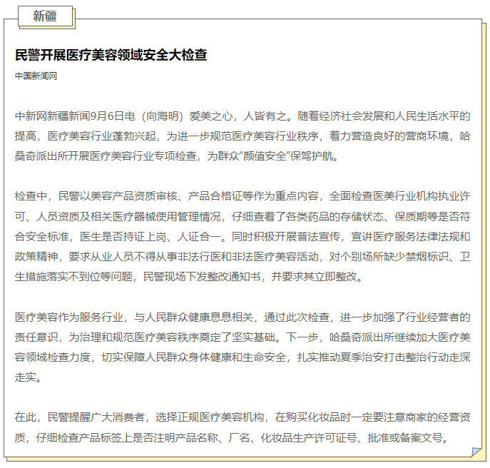 多地公安局开展医美大检查